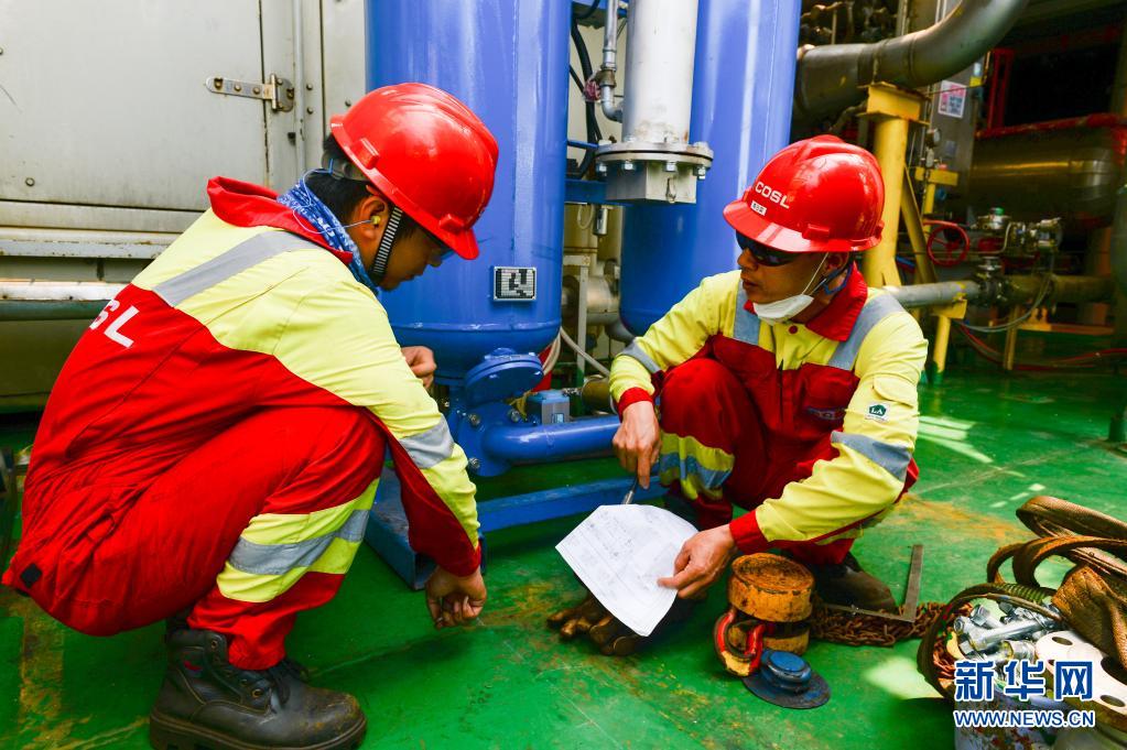 4月25日,工人在中國海油樂東15-1氣田作業(yè)。
