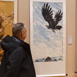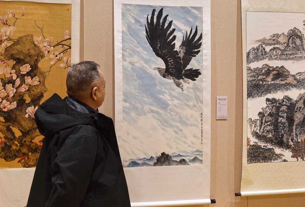 “希望我的作品能激发两岸同胞共鸣。”画家君寿介绍自己带来的作品《长空图》时难掩激动之情,他指向画中展翅腾飞的雄鹰说,“‘两岸一家亲’,希望我们能早日团圆,共同腾飞。”