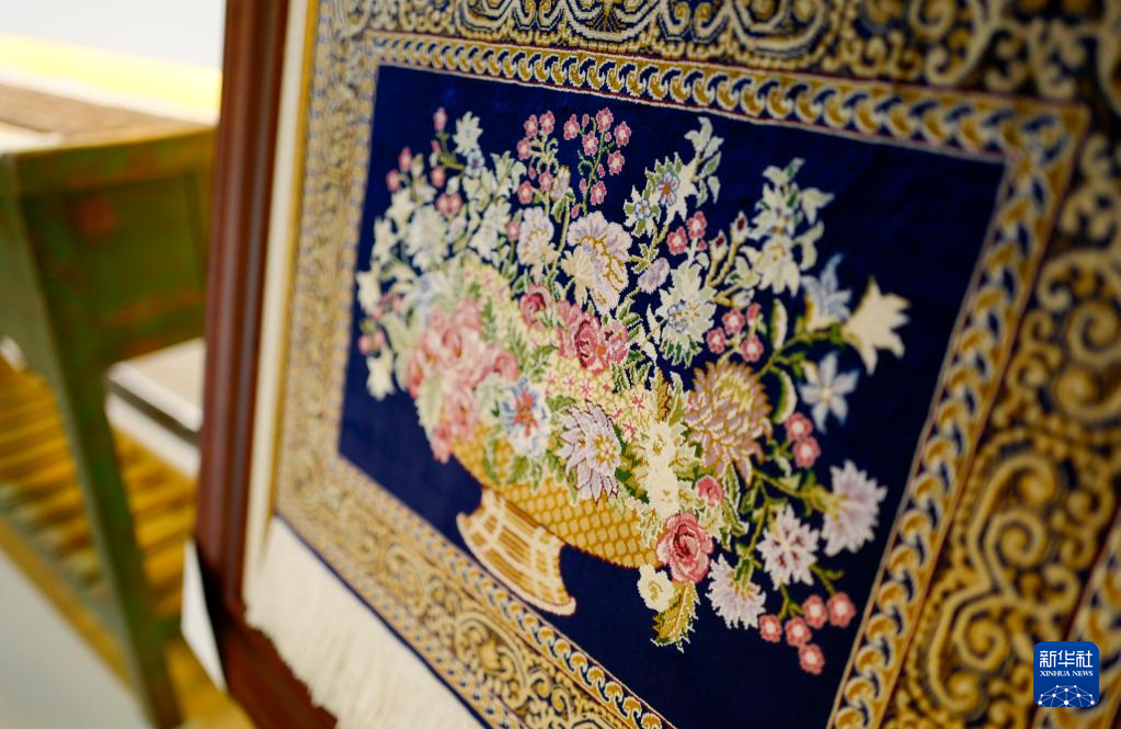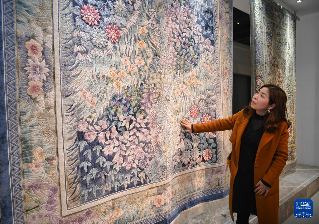 3月21日,游客在银河丝坊观赏出口海外的丝毯产品。