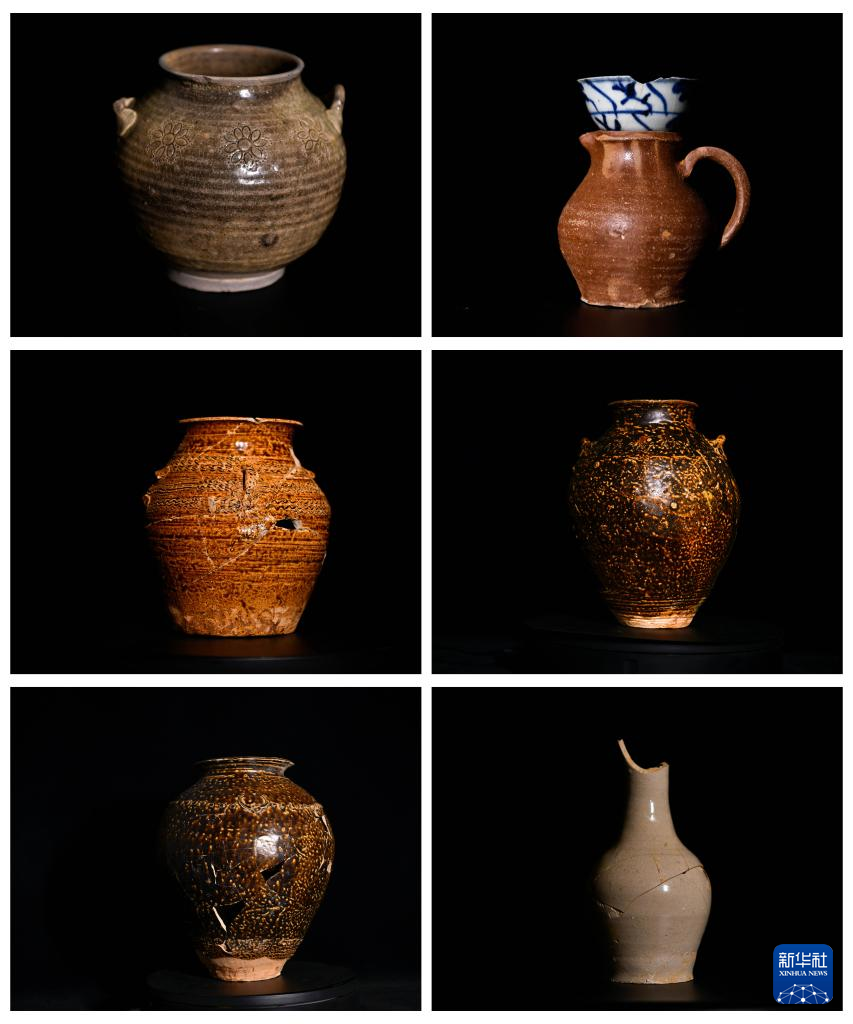 贵州贵安新区大松山墓群出土的陶瓷类文物(拼版照片,3月30日摄)。