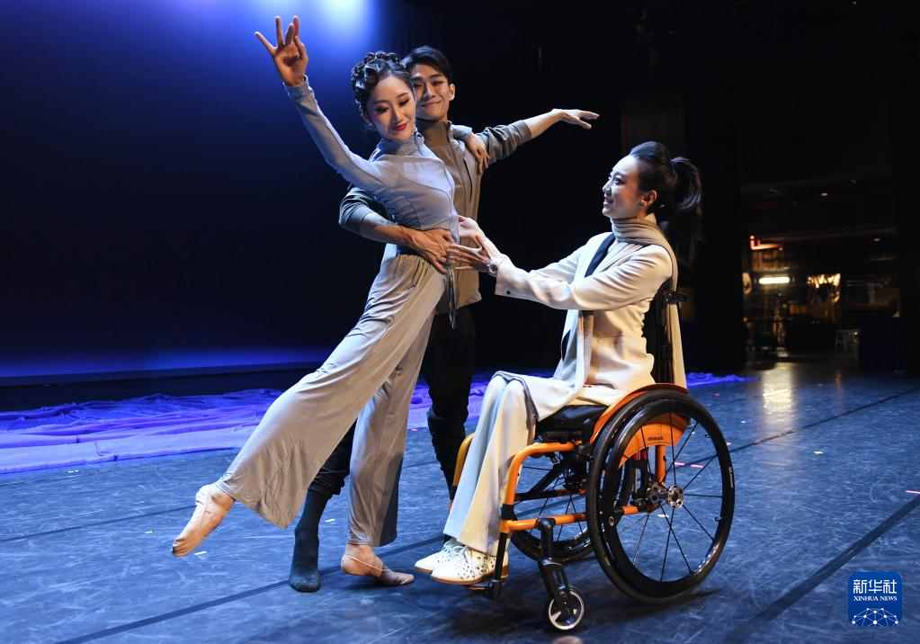4月3日,演员在舞剧《蓝色裙摆》中表演。