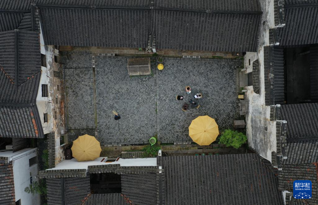 4月3日,几名老街青年创客聚集在姜鹏工作室交流心得体会(无人机照片)。