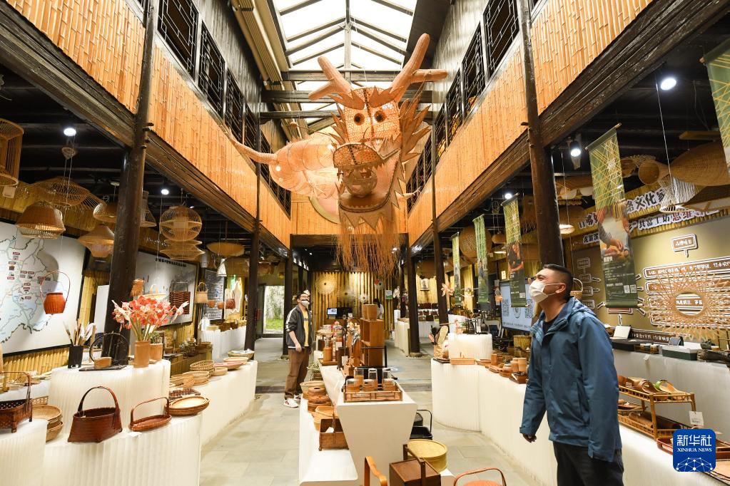 姜鹏团队设计的部分竹产品(4月3日摄)。