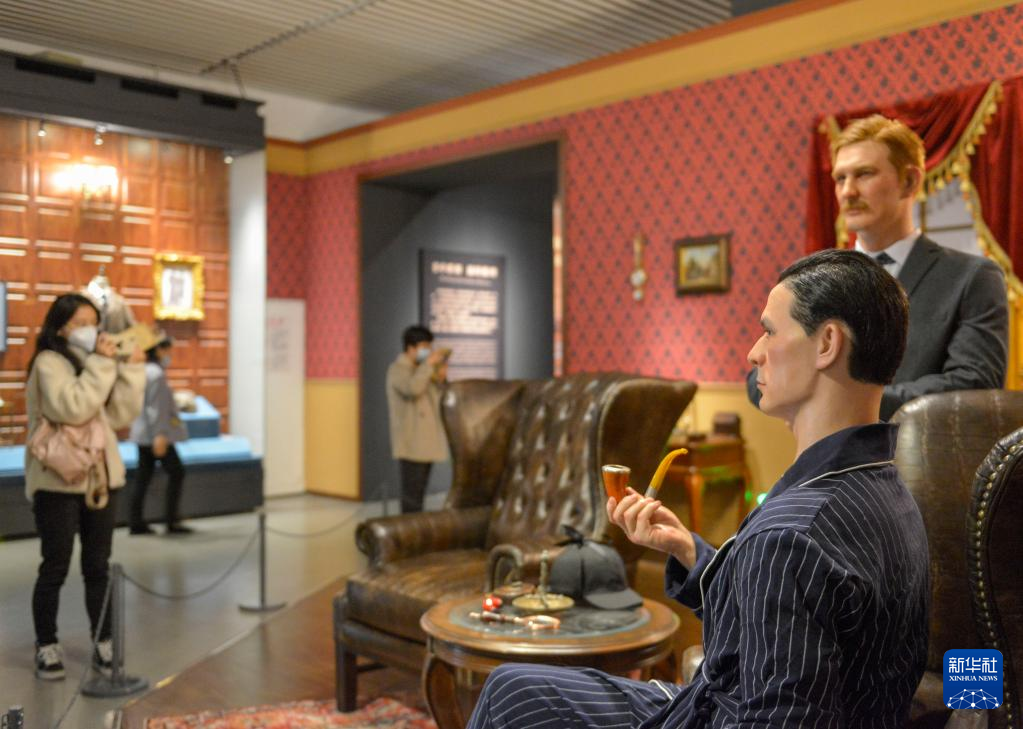 4月28日,参观者在国家图书馆观看“Case Lab元世界——福尔摩斯大型沉浸式主题展”。