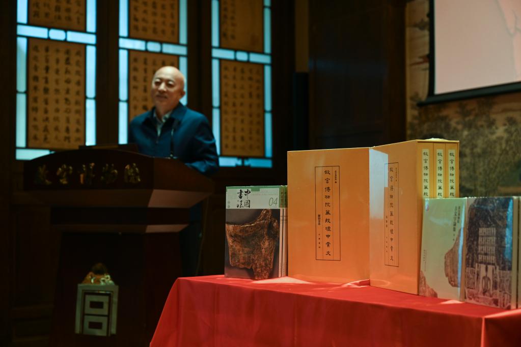 当日,“古文字与中华文明传承发展工程”故宫博物院平台阶段成果发布会在北京故宫博物院举行,集中发布了表现故宫甲骨保护与整理的《故宫博物院藏殷墟甲骨文》“马衡卷”“谢伯殳卷”,体现故宫古文字相关学术研究的《故宫古文字论集(第一辑)》,展现技艺传承的《心手相追—金石传拓艺术研究》,表现甲骨艺术的《中国书法》“新见故宫博物院藏殷墟书法研究特辑”专栏等一批成果。