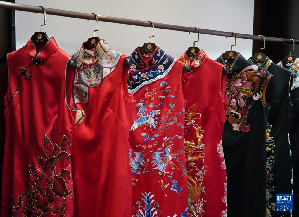 这是5月30日在上海市“龙凤旗袍”门店拍摄的旗袍。