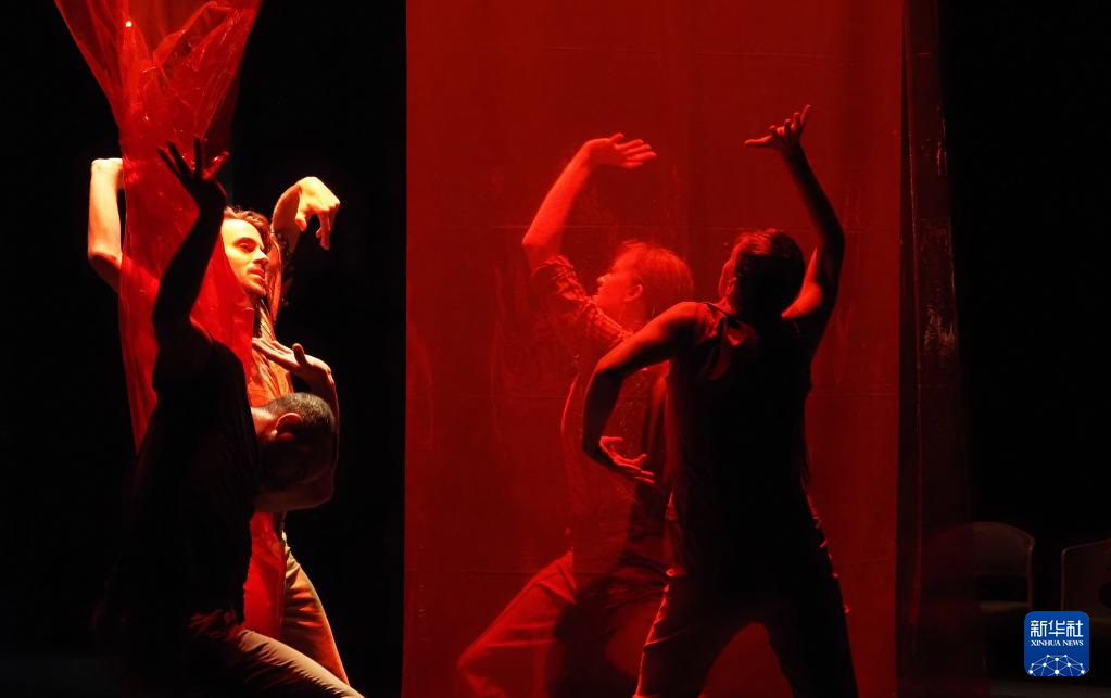 6月13日,瑞士约书亚·蒙登舞蹈团的演员在上海国际舞蹈中心实验剧场表演《幸福的降落伞》。