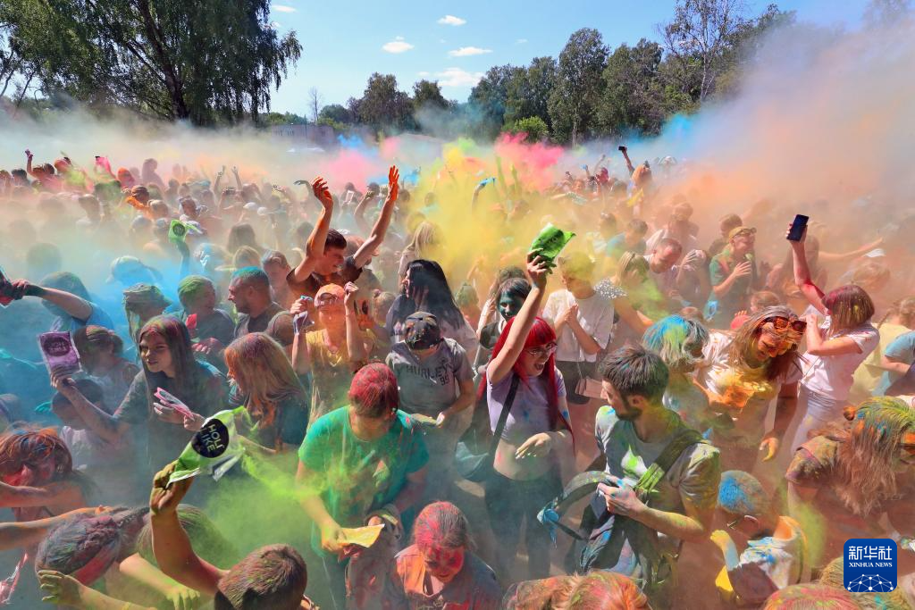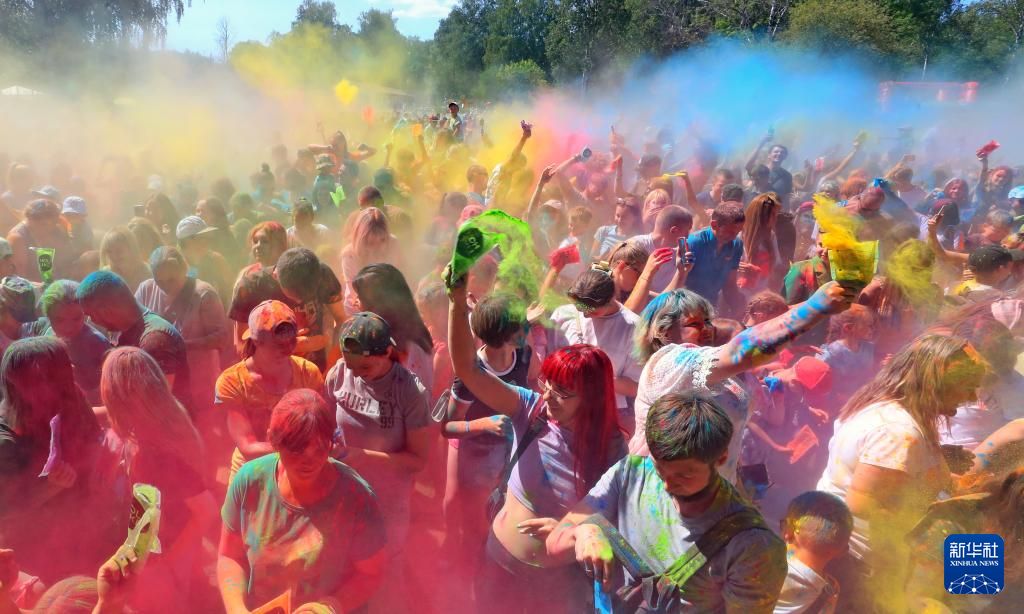 当天,第32届“斯拉夫巴扎”国际艺术节附属活动色彩节在白俄罗斯维捷布斯克举办,吸引众多年轻人参加。