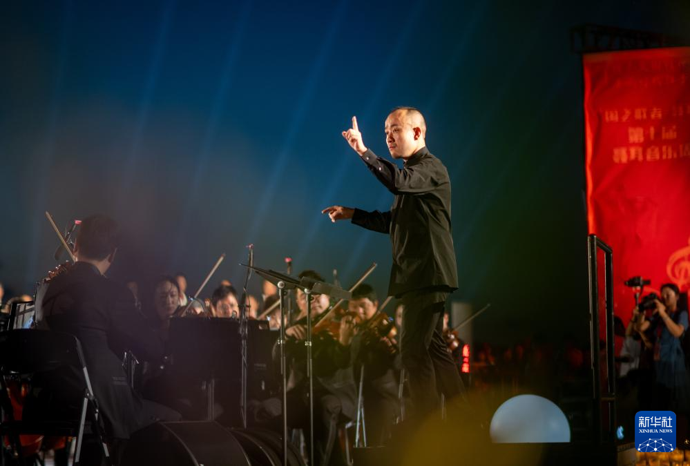 来自昆明聂耳交响乐团及昆明市民族歌舞剧院民乐团的演奏家们在昆明市滇池畔共同演奏包括《义勇军进行曲》《卖报歌》在内的聂耳代表作(7月17日摄)。