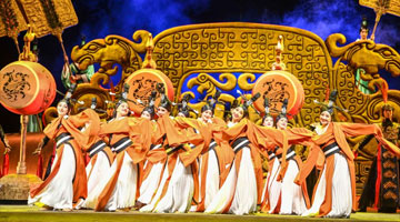 7月21日,孩子们在中国滦州皮影博物馆内参观皮影长卷。