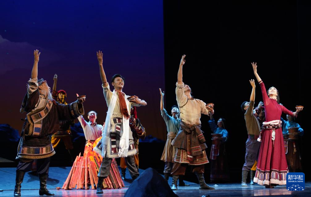 演员在舞剧《大河之源》中表演(7月26日摄)。