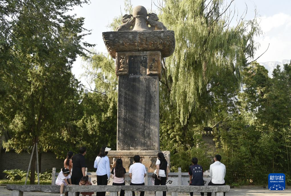 8月7日,游人在嵩阳书院内参观“大唐嵩阳观纪圣德感应之颂碑”。