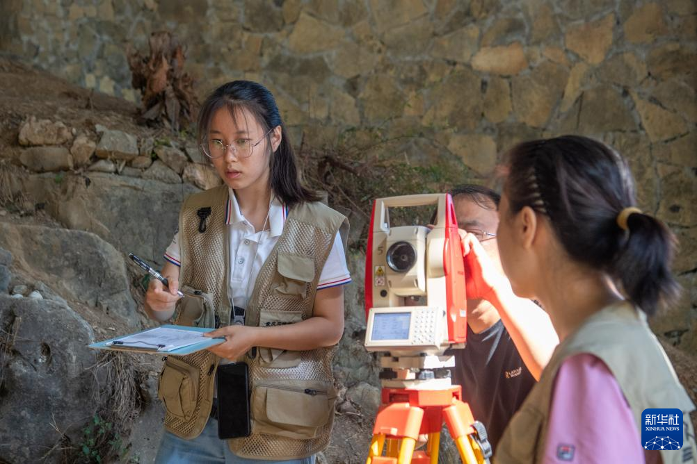 8月16日,工作人员在位于重庆市巫山县庙宇镇的龙骨坡遗址上开展勘测工作。