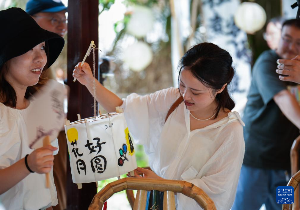 8月20日,青年在东白湖镇“七夕”联谊活动的“乞巧雅集”游玩。