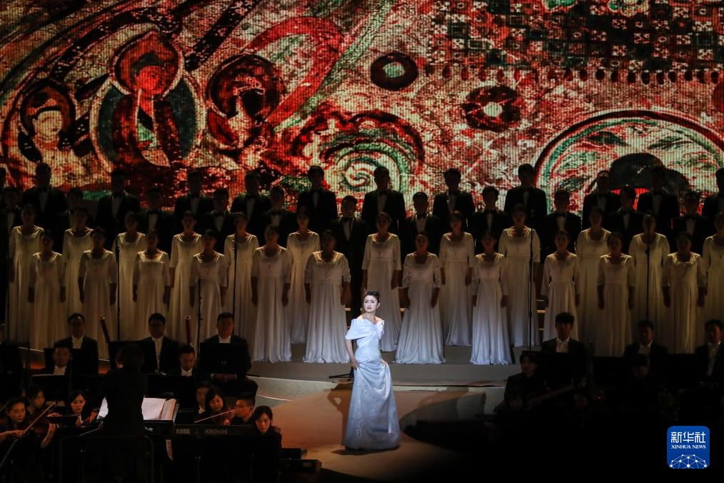 9月5日晚,音乐剧《飞天》(音乐会)在位于甘肃省敦煌市的敦煌大剧院上演。本场演出精选音乐剧《飞天》中14首经典唱段,以敦煌飞天为灵感,以“一带一路”为主题,荟萃丝路文化元素,讲述敦煌精彩故事。