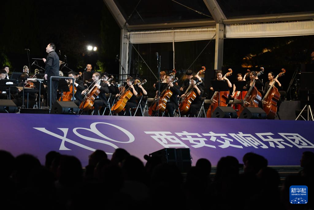 10日晚,2023西安交响乐团大雁塔户外公演在西安市大雁塔北广场举行。这场免费户外公演同时也通过网络平台进行线上直播,让广大西安市民、游客和网友同享一场户外大型古典音乐盛宴。