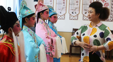 9月16日,皮影戏艺人在玉田县“非遗会客厅”皮影工坊内表演皮影戏。