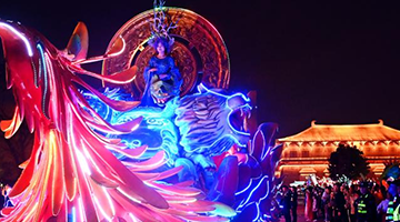 唐大明宫是盛唐时期享有盛名的宫殿群,有着“千宫之宫”的美誉。国庆期间,古风演艺、华服大秀、曲艺汇演、彩车巡游等一系列活动在大明宫国家遗址公园持续上演。夜幕之下,盛唐文化与现代时尚在此相映生辉,吸引市民游客前来参观打卡。