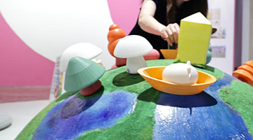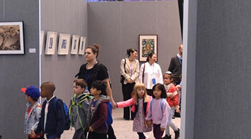 10月6日,在德国柏林,游客站在洪堡大学内的装置艺术品前。