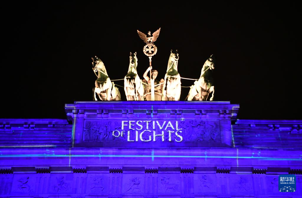 10月6日,德国柏林勃兰登堡门被灯光点亮。