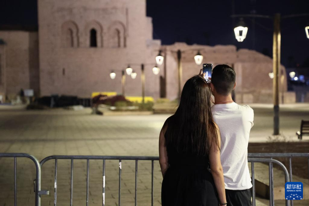 10月11日,游客在摩洛哥马拉喀什游览拍照。
