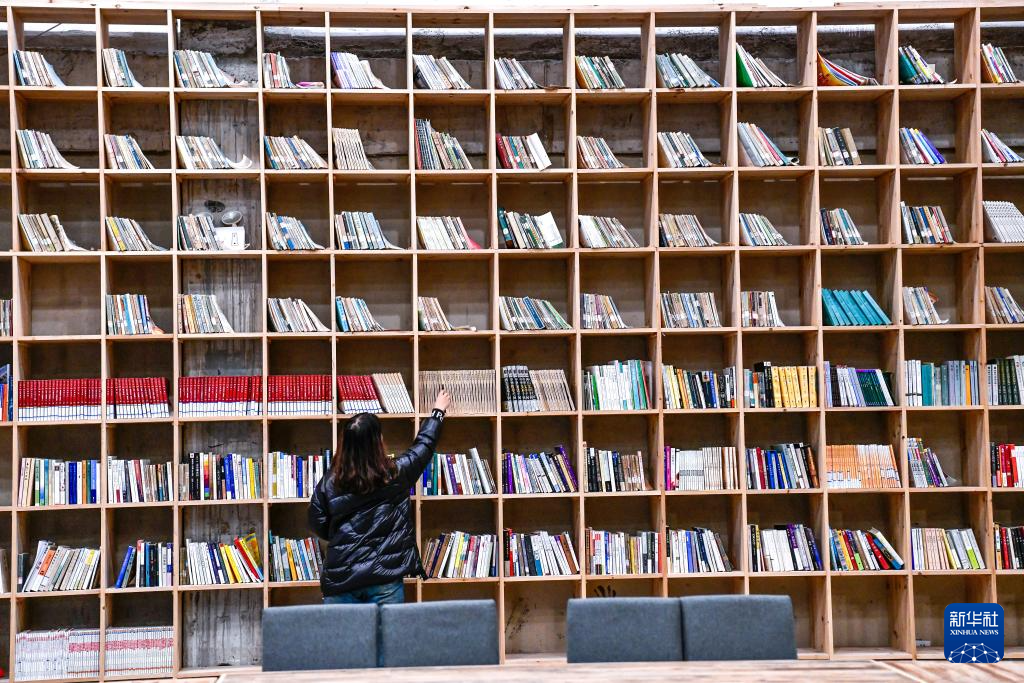 11月15日,帮扶干部在贵州省石阡县国荣乡楼上古寨乡村图书馆里整理图书。
