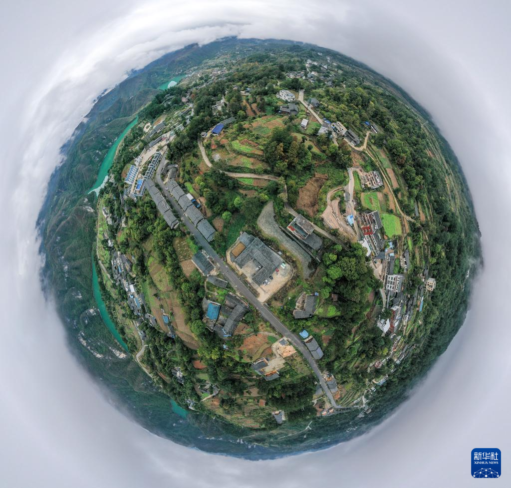 这是11月15日拍摄的贵州省石阡县国荣乡楼上古寨风光(无人机全景照片)。