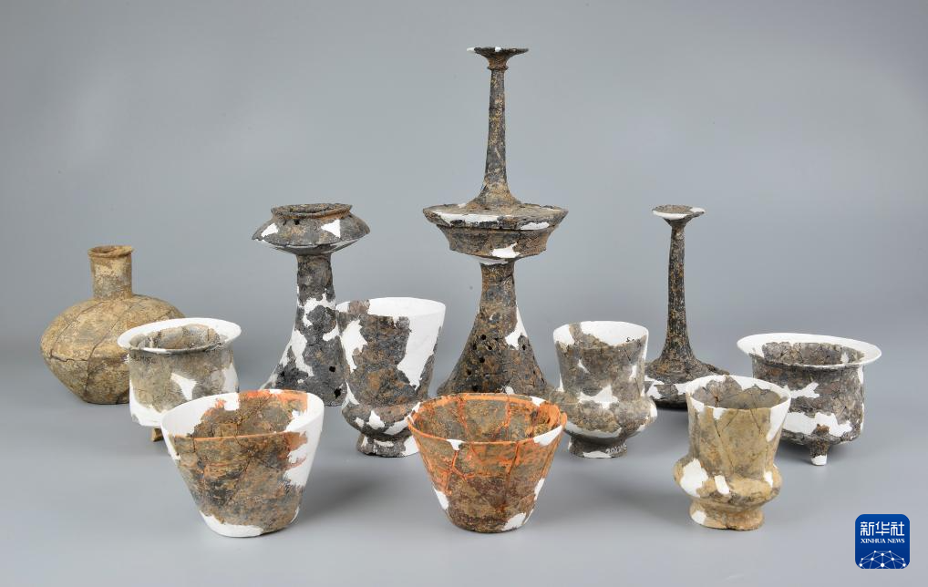 福建平潭岛龟山遗址出土的部分陶器(拼板照片)。