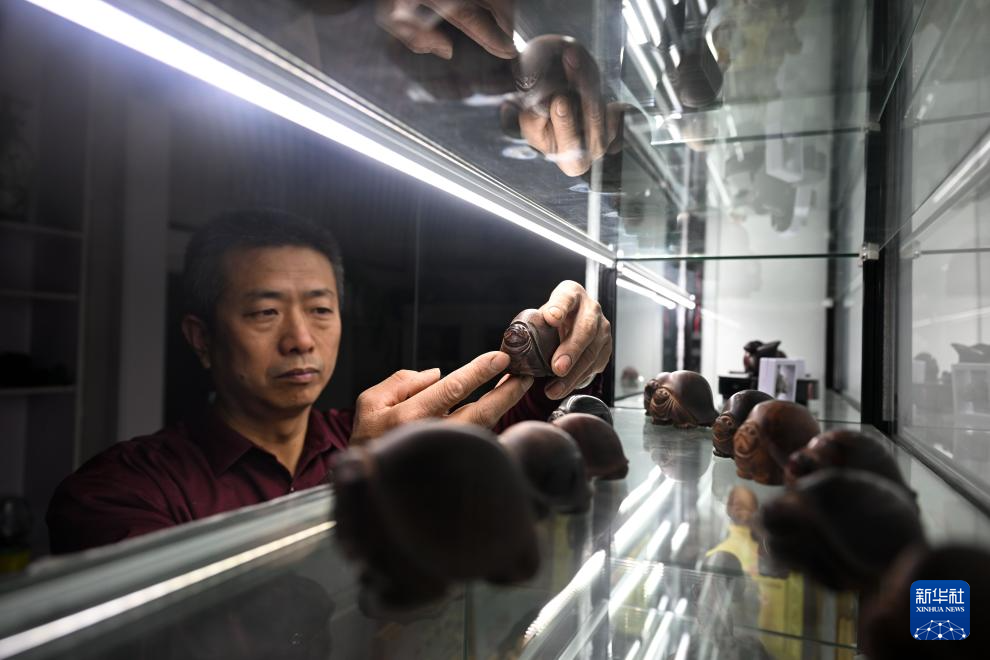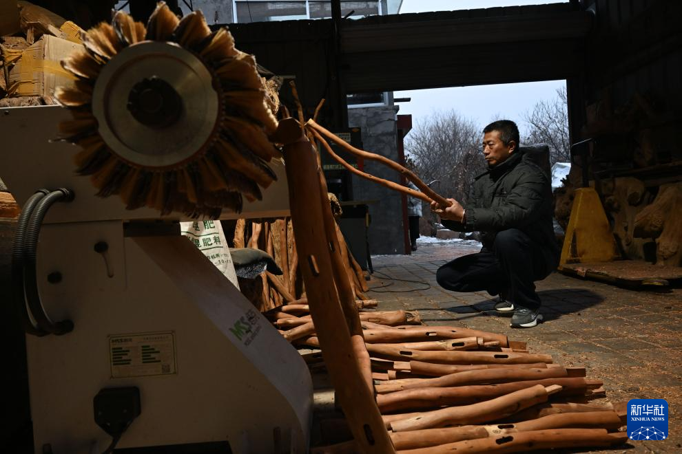 李明军是河北省隆化县一位根雕艺人。他从事根雕行业近30年,不起眼的树根,经过他“三分雕刻,七分天然”的修饰,成为一件件美轮美奂的艺术作品。