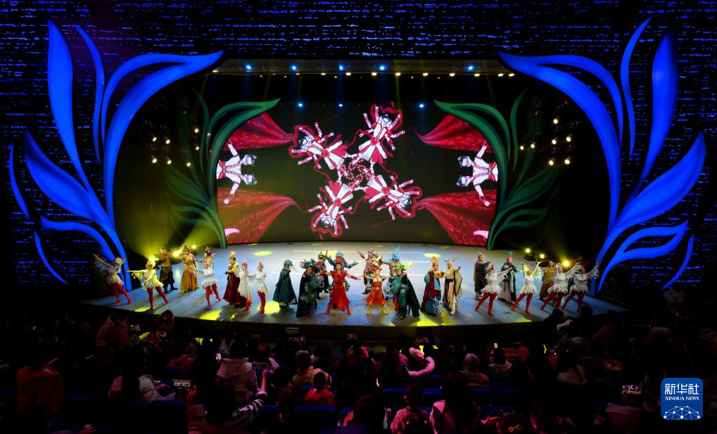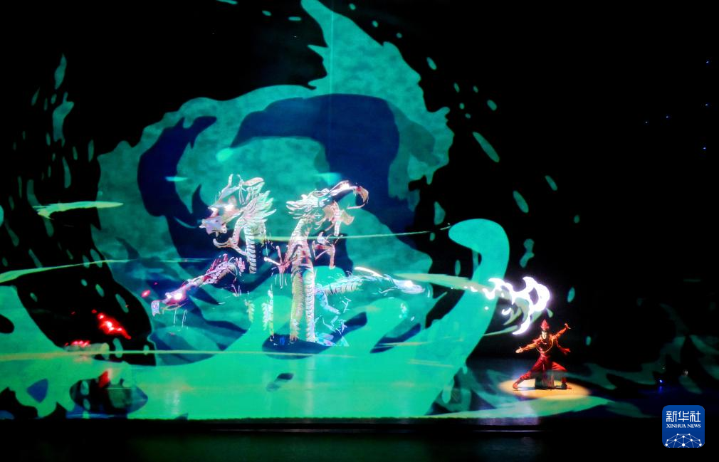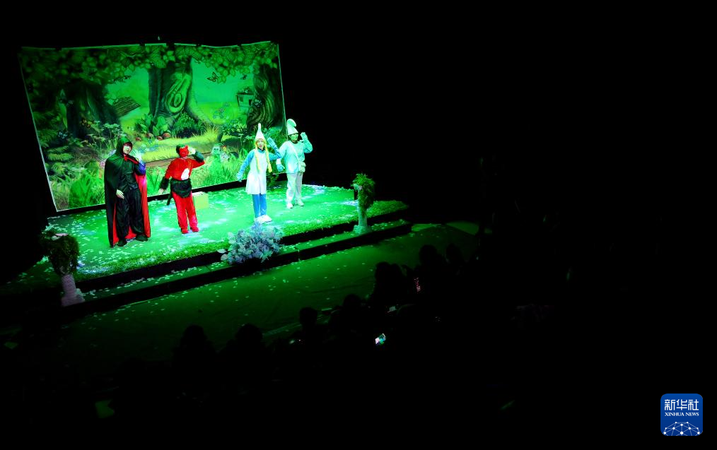 西安儿童艺术剧院在曲江海洋极地公园演出儿童舞台秀《哪吒》(2023年12月31日摄)。