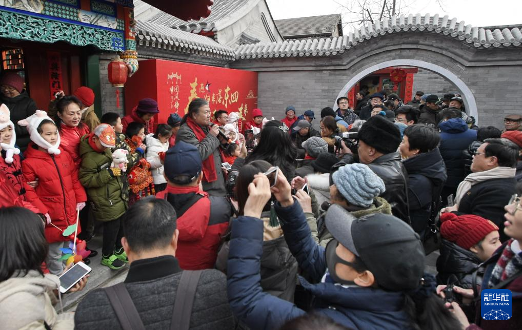 杨信在给北京居民讲述老北京立春的民俗(2019年2月3日摄)。