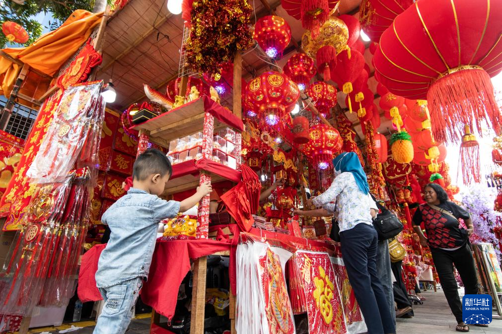 随着龙年春节临近,印尼雅加达民众开始采购年货迎接节日的到来。