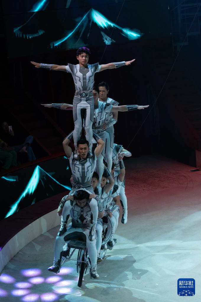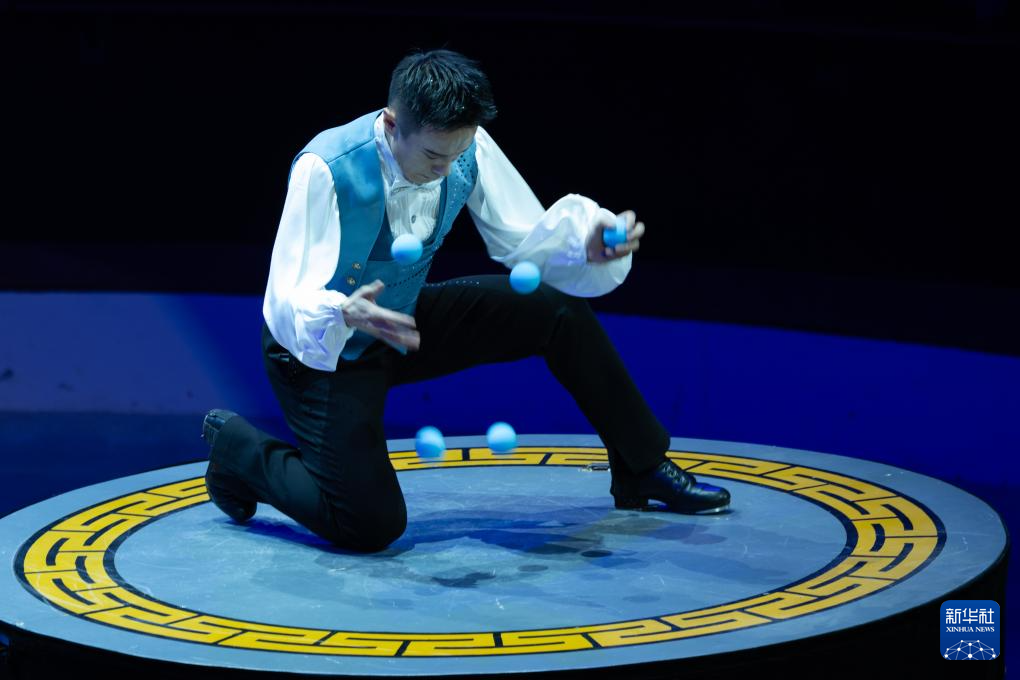 1月10日,中国杂技演员在匈牙利布达佩斯国际马戏节上表演。