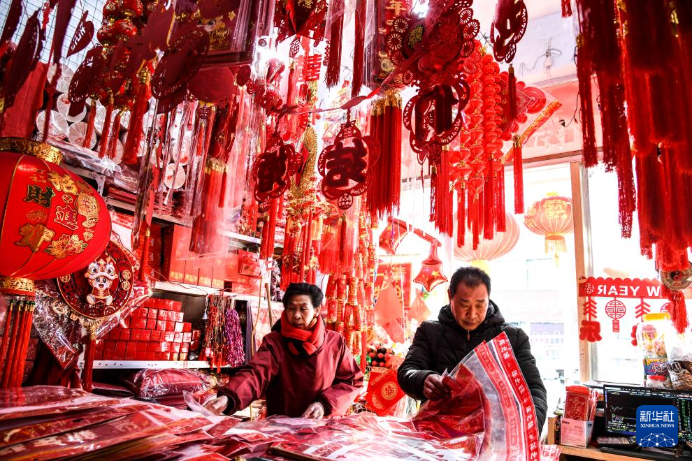 春节临近,各地张灯结彩。人们逛花市、赏花灯、置办年货,年味渐浓。