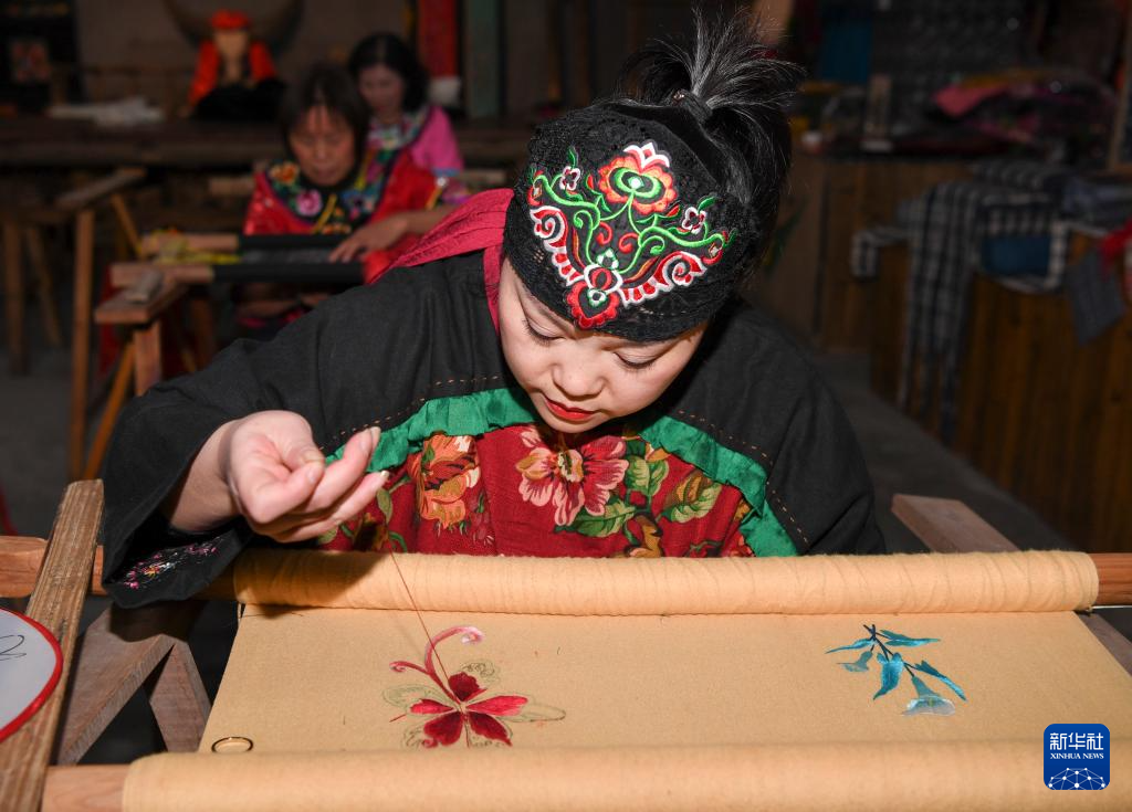 来自重庆市秀山土家族苗族自治县梅江镇民族村的杨秀燕是重庆市非遗秀山金珠苗绣传承人。近年来,杨秀燕带头成立苗绣工艺品合作社,开设苗绣培训班,培养出不少绣娘,并结合市场需求不断创新推出多样苗绣产品,在传承和推广苗绣文化的同时,带动当地人就业增收。