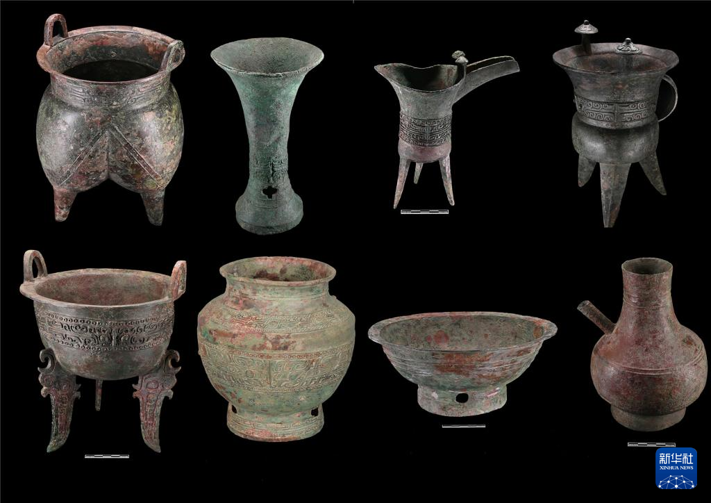 陕西清涧寨沟遗址后刘家塔墓地出土的镶绿松石铜饰(拼版照片)。