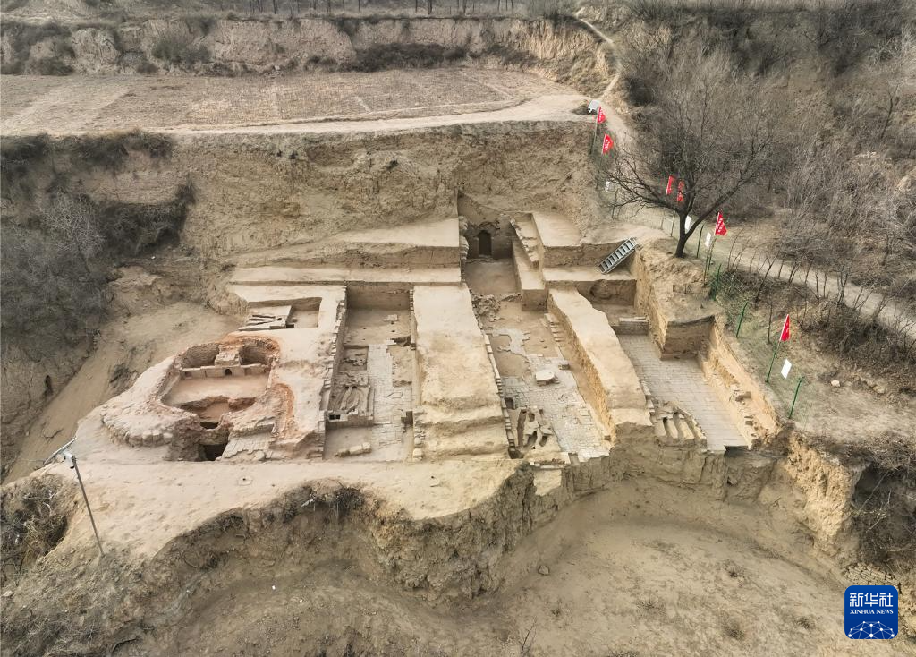 陕西清涧寨沟遗址瓦窑沟M8墓室出土的葬车。