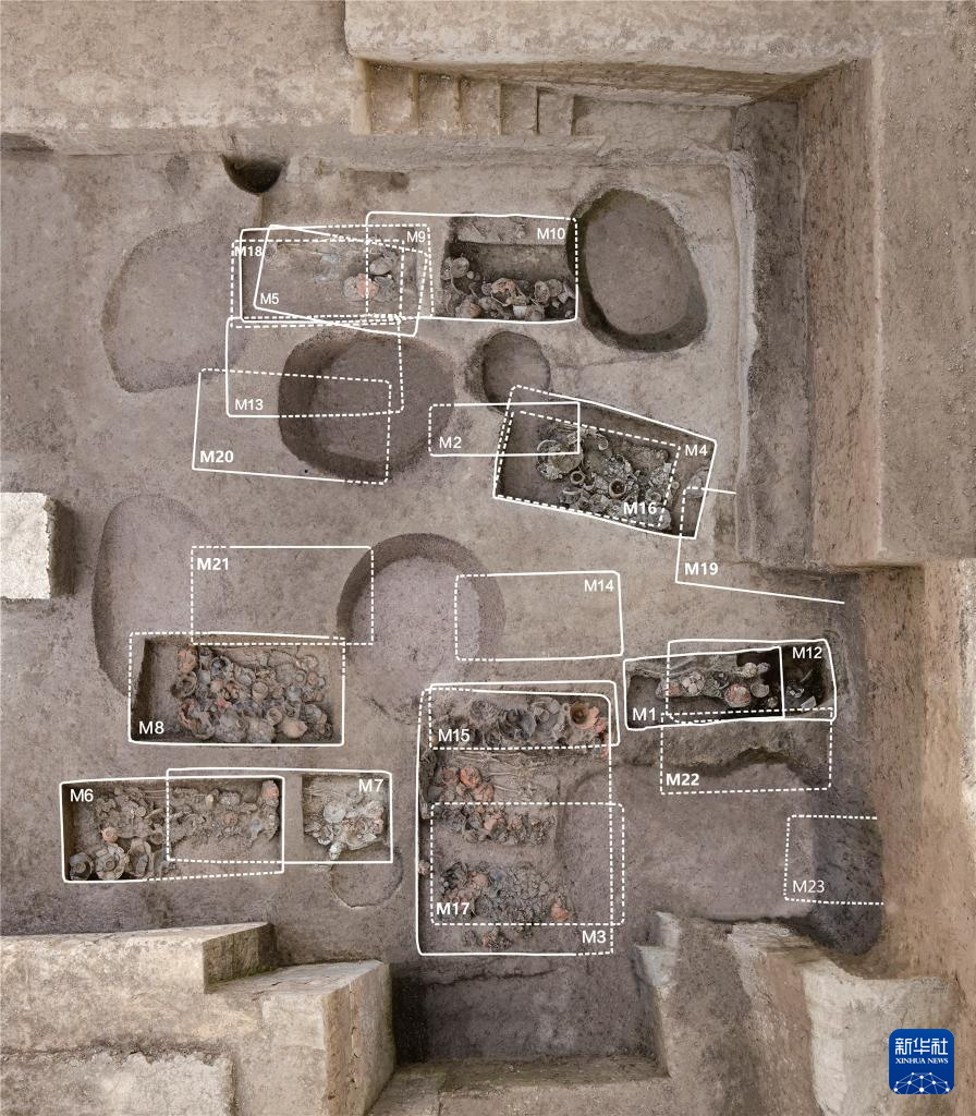 河南郑州商都书院街墓地发掘现场(2023年5月13日摄,无人机照片)。