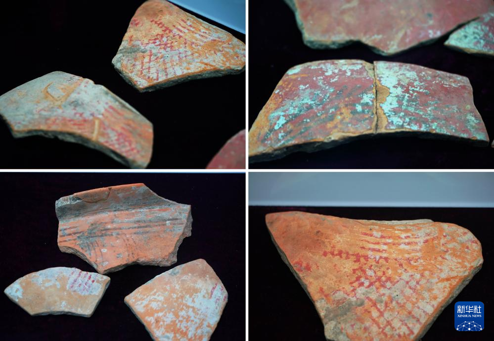 这是王庄遗址出土的陶片(拼版照片,1月30日摄)。