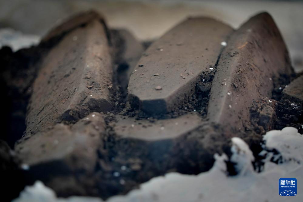 这是王庄遗址出土的玉覆面组件(1月30日摄)。