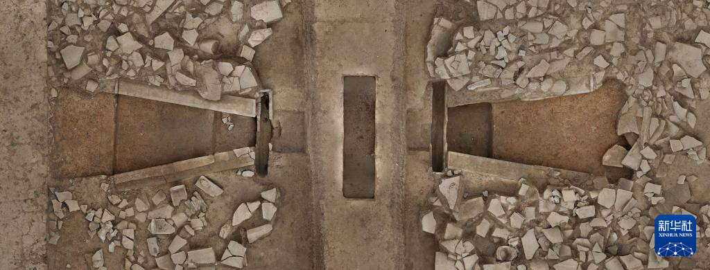 这是甘肃省陇南市礼县四角坪遗址的排水设施(2024年1月8日摄,无人机照片)。