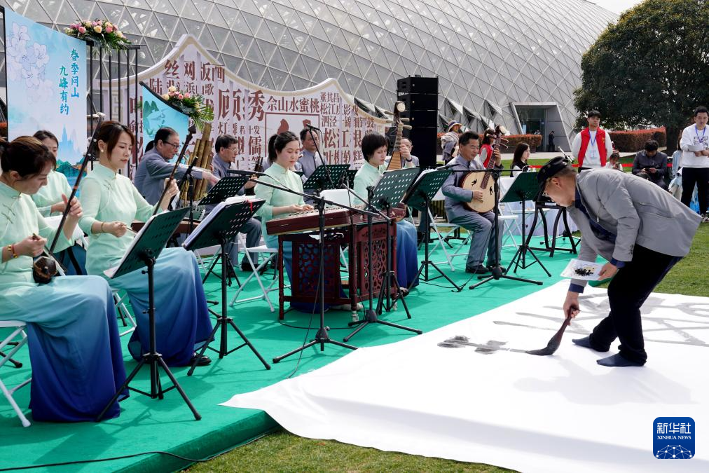 3月30日,江南丝竹专场音乐会与书法家的地书表演在辰山植物园的“城市美育日”活动现场上演。