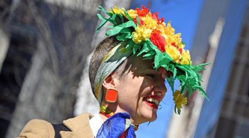 4月4日,水落坡镇乡村社火队队员在演绎鲁北乡村的传统生产技艺。