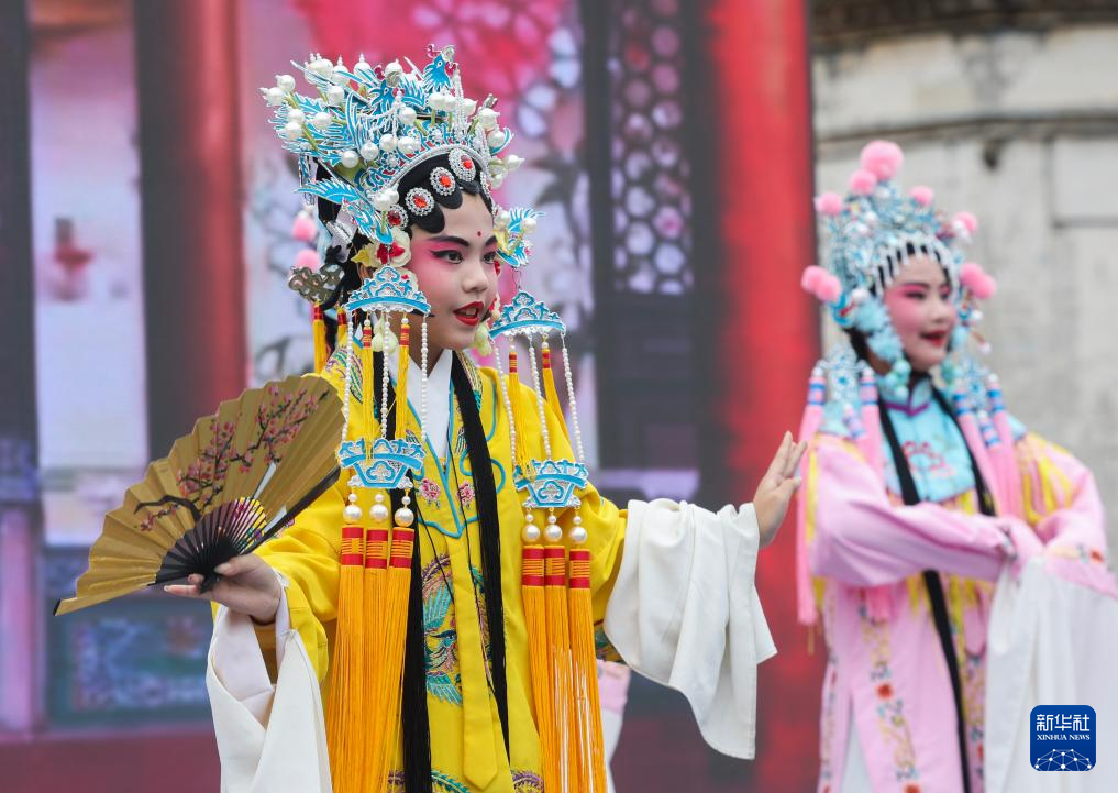 4月11日在“新叶三月三”特色民俗非遗展演中拍摄的昆曲表演。
