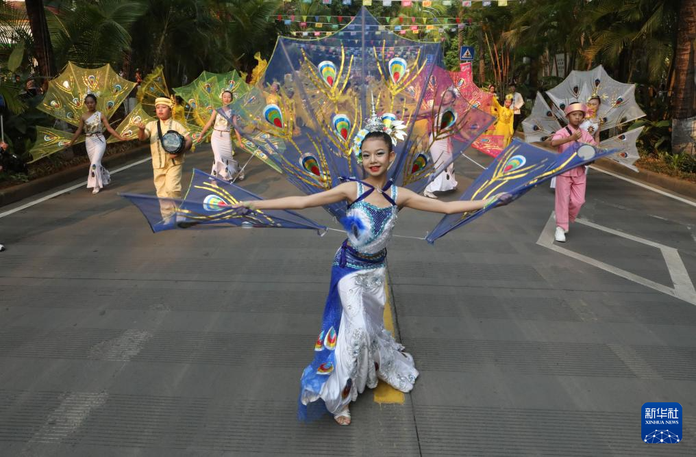 当日,云南省西双版纳傣族自治州在景洪市举办泼水节民族民间传统文化游演活动,各族群众代表身着节日盛装载歌载舞,向市民和游客展示了丰富多彩的少数民族传统文化。
