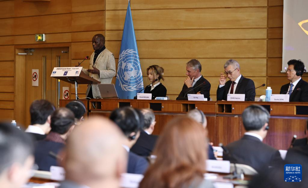 4月15日,在位于法国巴黎的联合国教科文组织总部,与会代表出席“文明交流互鉴理念国际研讨会”。