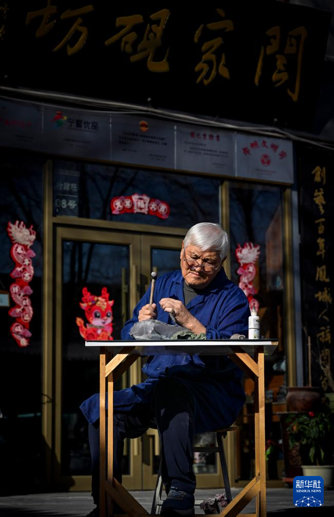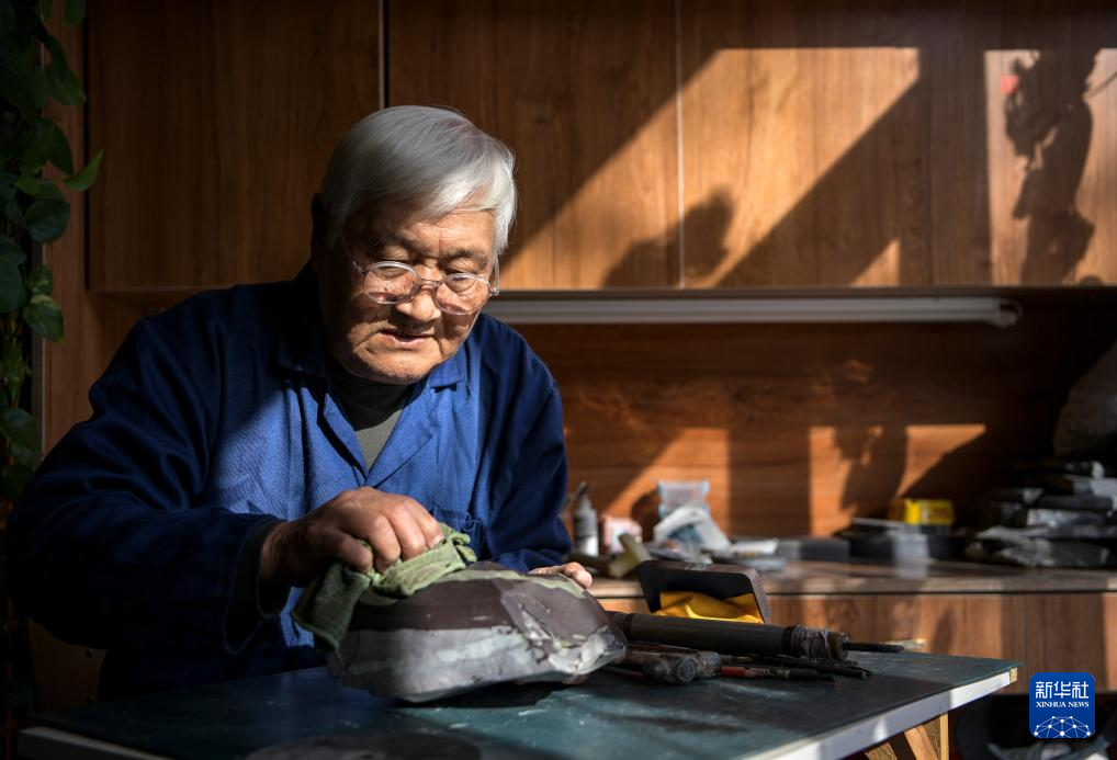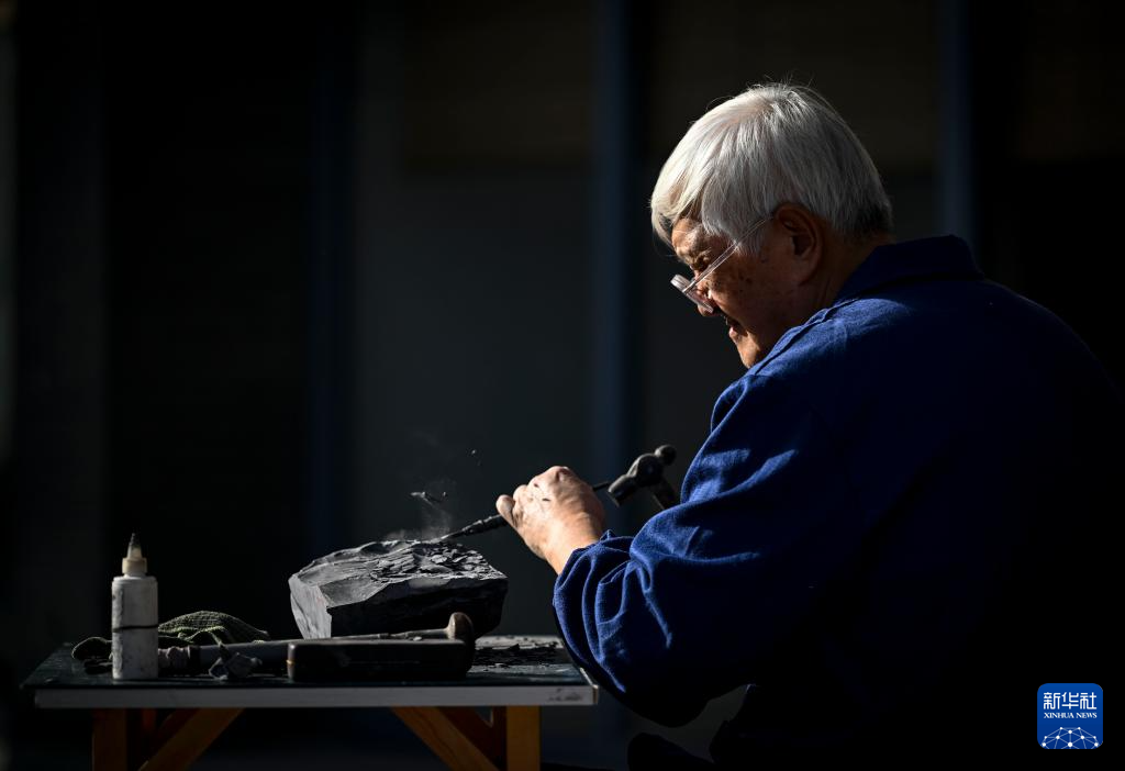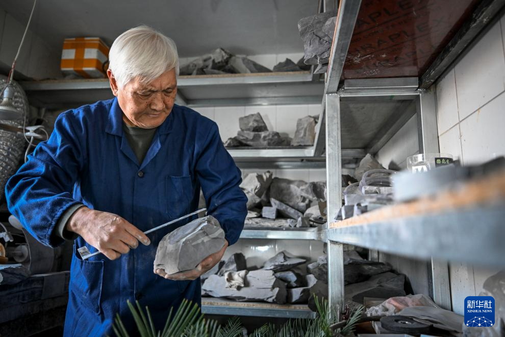 步入银川文化城,古色古香的建筑下,一位满头银发的老人在阳光下“叮叮当当”,对着一块贺兰石精雕细琢——他就是钻研贺兰砚雕刻技艺50多年的国家级非遗传承人闫森林。