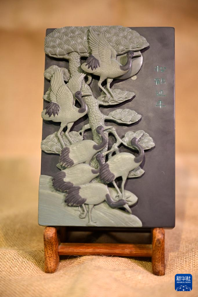 这是闫森林的贺兰砚作品(4月15日摄)。