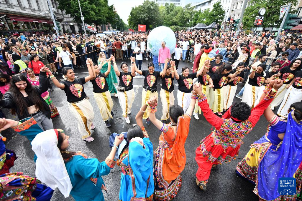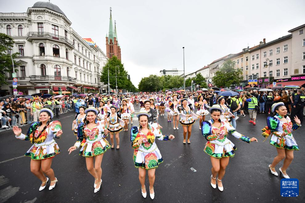 5月19日,来自哥伦比亚的演员参加柏林文化狂欢节大游行。