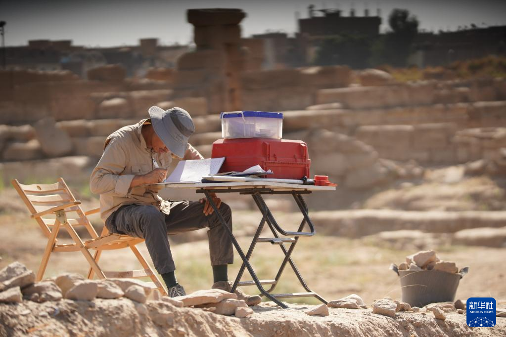 5月1日,中方考古队员高伟在中埃卢克索孟图神庙联合考古项目所在地工作。